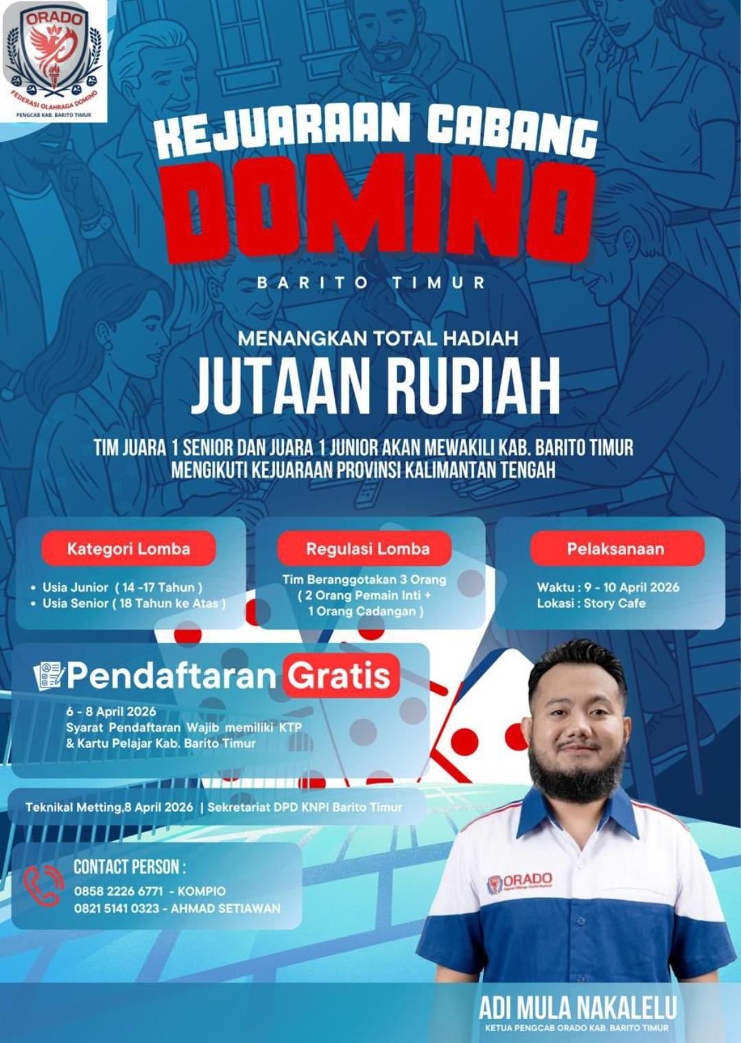 Ajang bergengsi yang diselenggarakan oleh Pengcab ORADO Barito Timur ini akan berlangsung pada 9 hingga 10 April 2026, bertempat di Story Cafe.